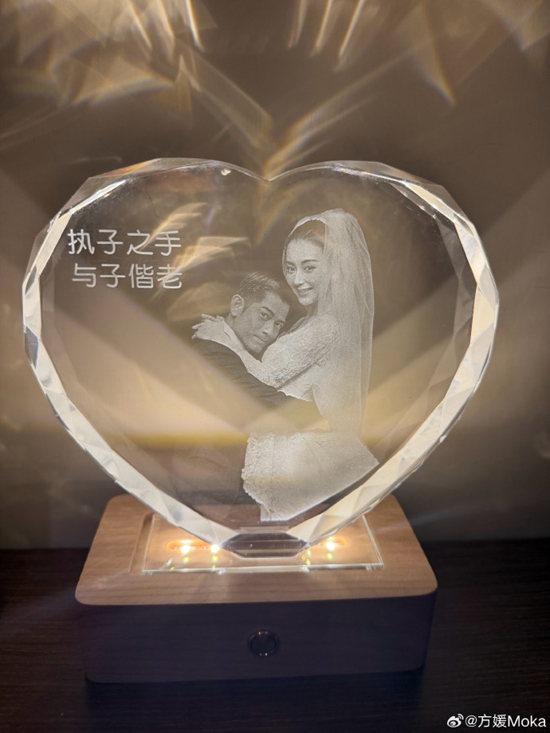 方媛也同步更新动态,晒出郭富城送她的纪念礼物——一款网购的情人节爆款水晶摆件,平价又简约,毫无天王夫妇的奢华感,被网友调侃“天王嫂也爱淘宝爆款”,而这份接地气的礼物,恰恰凸显了两人婚姻里不掺杂质的生活化温情,没有刻意炫富,只有细水长流的陪伴。
