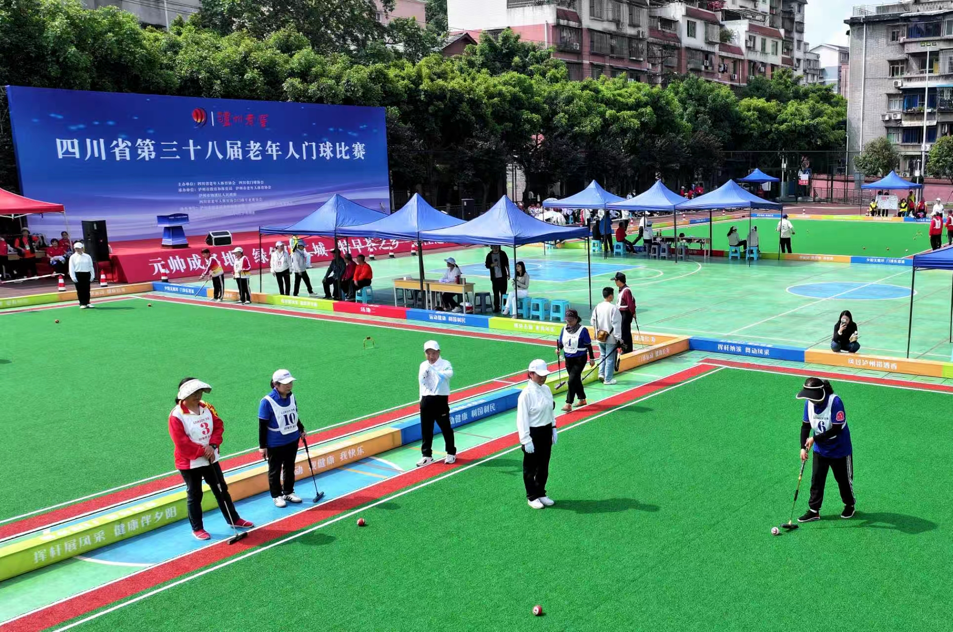 作为全省知名的“门球之乡”,纳溪区深耕门球事业多年,持续完善场地设施、壮大运动队伍、培育赛事品牌。目前,全区建成老年体育公园一个,拥有标准门球场28片,门球队伍45支,常年参与运动的爱好者超400人,门球运动覆盖各镇(街道)、社区与机关企事业单位。