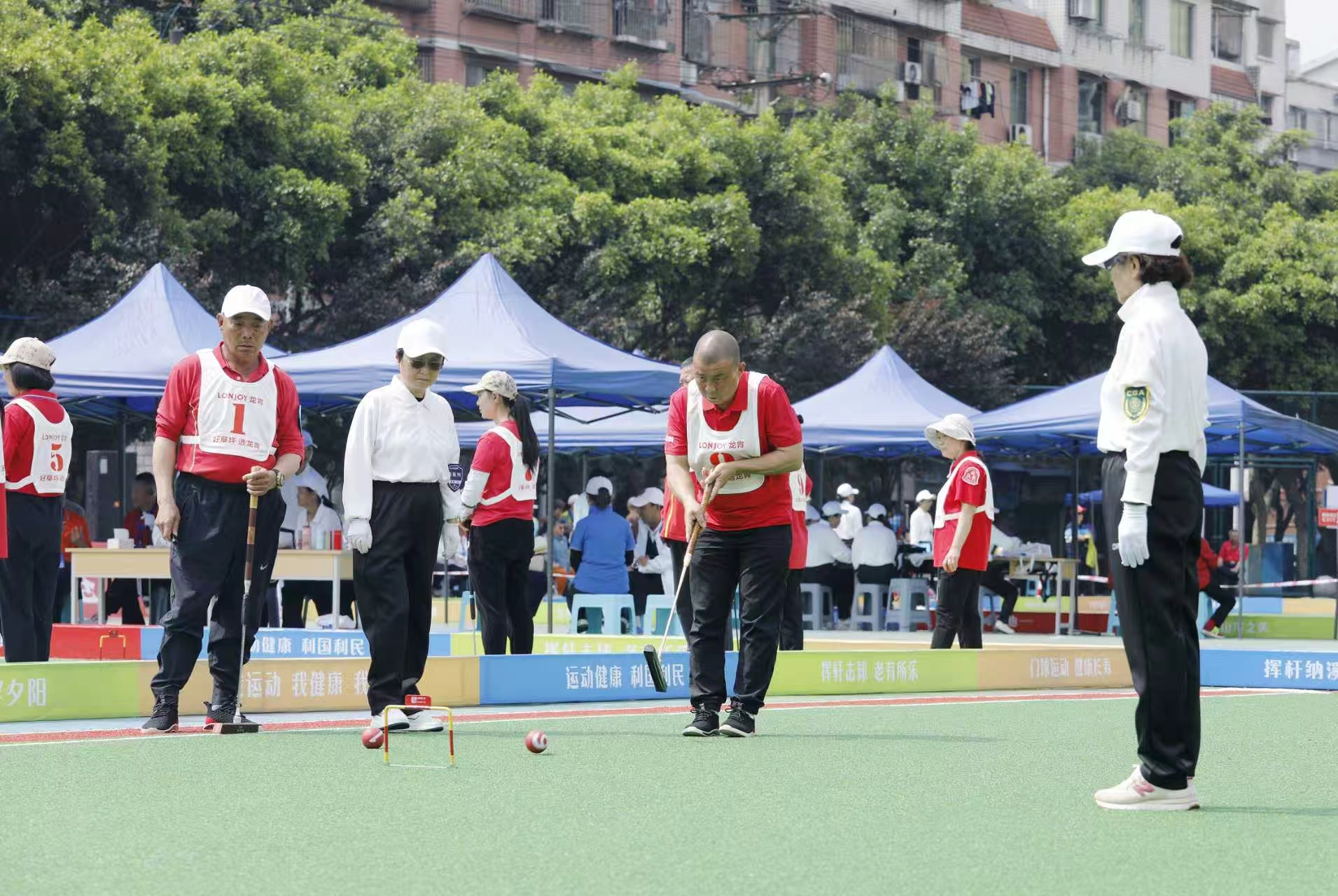 门球兼具趣味性、竞技性与健身性,是深受中老年人喜爱的全民健身项目。近年来,纳溪区构建便民惠民健身公共服务体系,不断完善城乡体育设施,成立老年人体育协会,设立门球、太极拳、健身操等项目,引导老年人开展健康丰富的体育活动。随着健身设施不断完善,老年群体健身意识持续增强,门球等特色体育活动蓬勃开展,有效提升老年人身体素质与生活质量,开创了泸州老年体育事业发展新局面,为健康四川建设贡献生动实践。